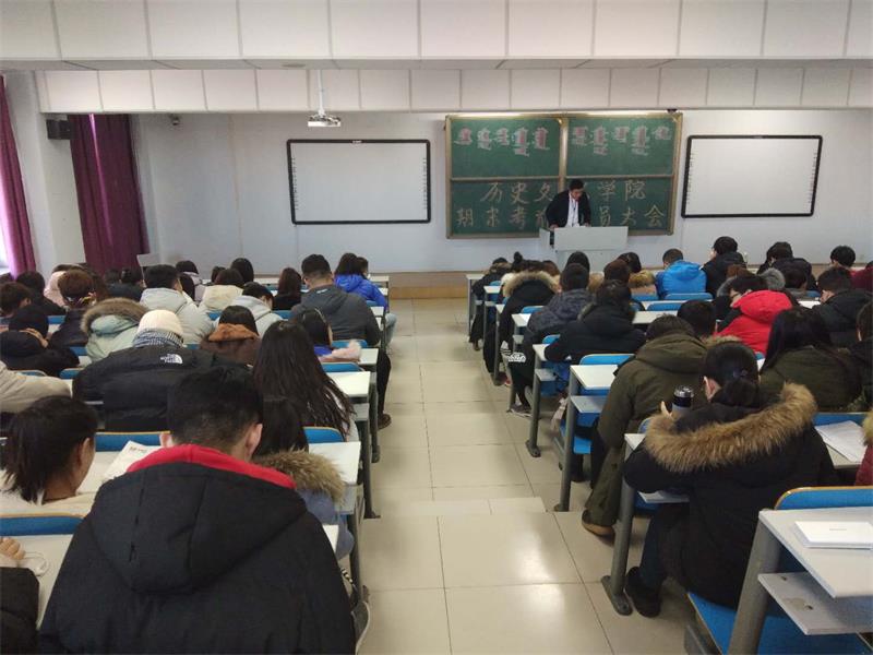 2018年12月27日,太阳成tyc7111cc在盛乐校区行知楼221召开2018-2019学年度第一学期考前动员大会,太阳成tyc7111cc2015-2018级学生500余人参加大会,学院党总支副书记副院长宋磊出席,会议由学工办副主任潘梅花老师主持。