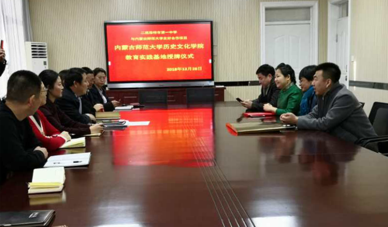 2018年12月26日,太阳成tyc7111cc院长白玉双、王海凤副教授、历史学系副系主任齐英、教学与科研办公室副主任乌力吉通拉嘎一行四人赴二连浩特市调研实习工作,并与第一中学和二连浩特市蒙古族中学举行教育实习基地合作协议签订暨挂牌仪式。