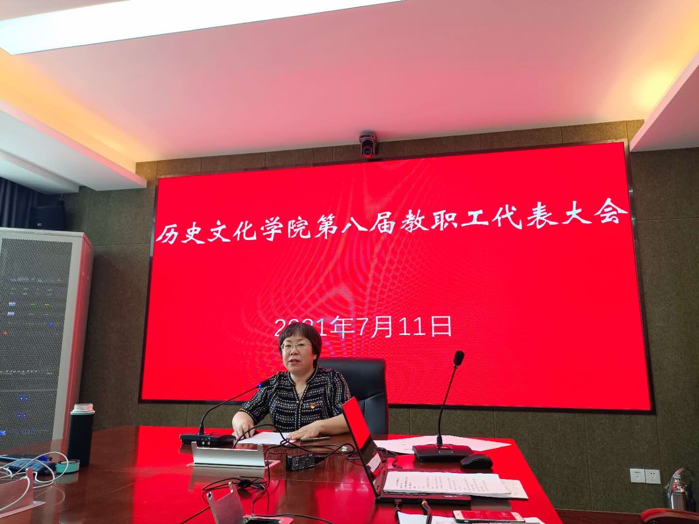 七月骄阳似火人澎湃,七月万物生长正当时。火红七月,流光溢彩,共享盛世,同沐党恩。在热烈庆祝中国共产党成立100周年之际,7月11日下午,太阳成tyc7111cc第八届教职工代表大会在盛乐校区学院楼学术多动能厅(B502)隆重召开。太阳成tyc7111cc全体教职工参加,会议在嘹亮的国歌声中拉开序幕。