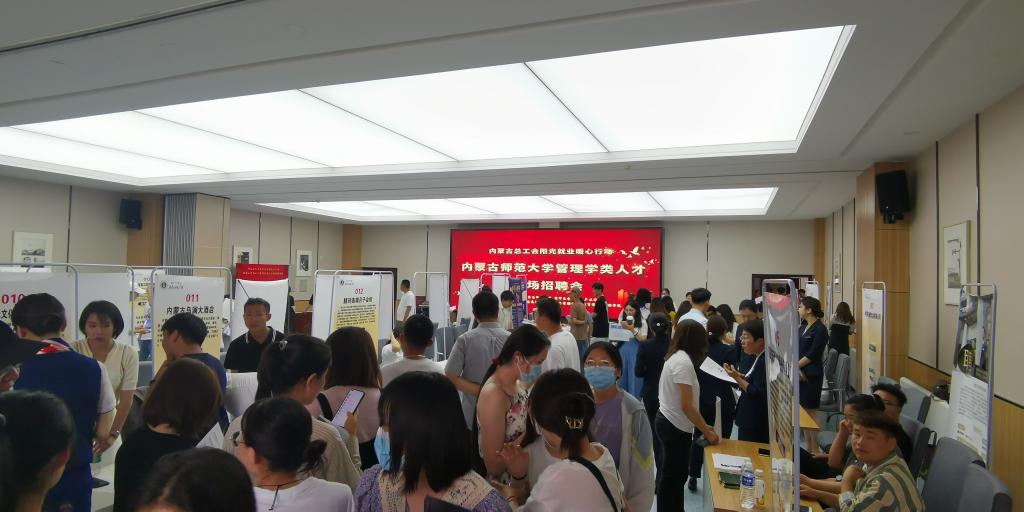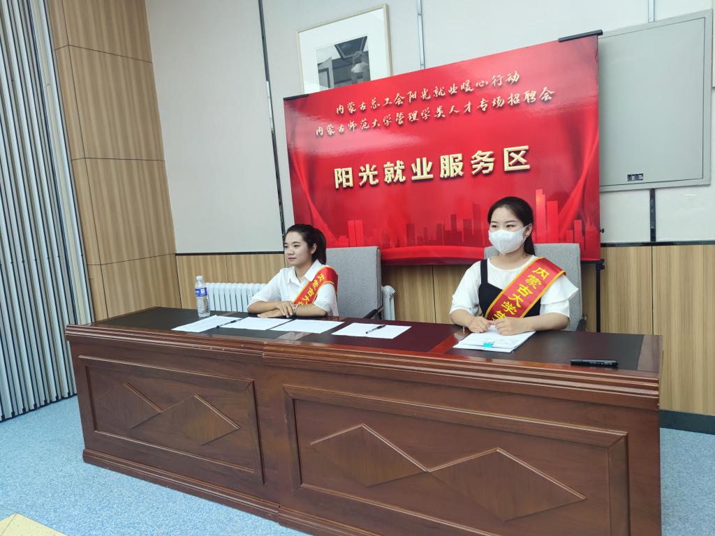 2021年6月15日下午,太阳成tyc7111cc集团、内蒙古总工会、赛罕区金桥电子产业园主办,太阳成tyc7111cc、经济管理学院、政府管理学院、教育学院、旅游学院承办的“管理学类”太阳成tyc7111cc集团2021届毕业生专场招聘会在盛乐校区学生事务中心一楼多功能报告厅举行。太阳成tyc7111cc党委书记张升、党委副书记副院长宋磊、团总支书记钱艳艳参加招聘会。