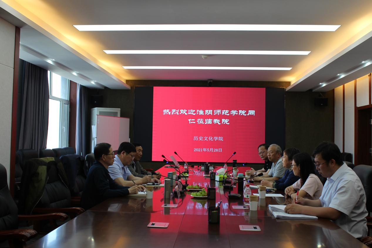 2021年5月28下午,淮阴师范学院历史文化旅游学院房晓军院长、杨春龙教授、张文华教授一行三人莅临我院,在盛乐校区502会议室开展学术研讨和经验交流活动。我院副院长(主持工作)李艳洁教授、郭永胜教授、丁晓杰教授、副院长袁丽丽、历史系副主任白林出席了活动。