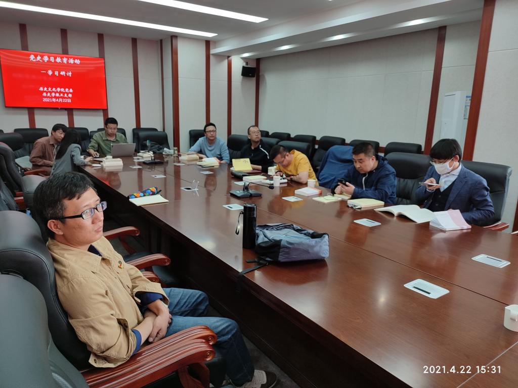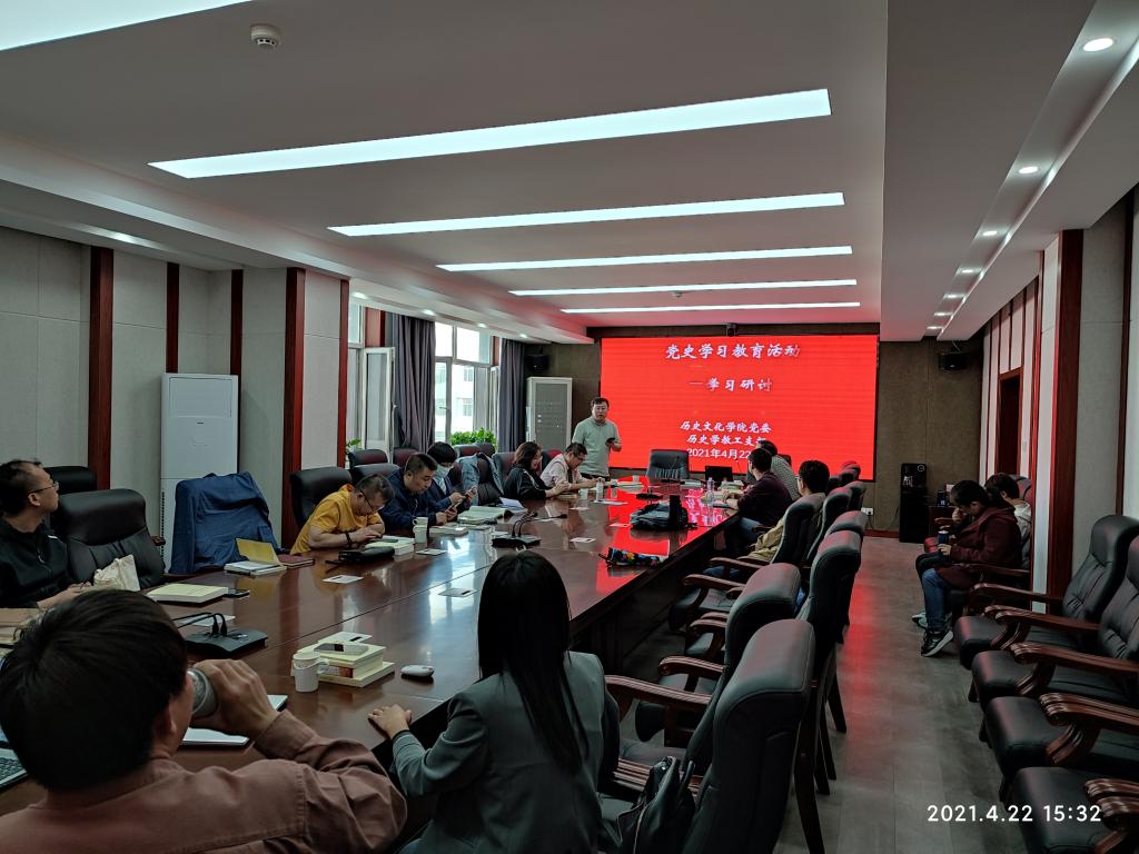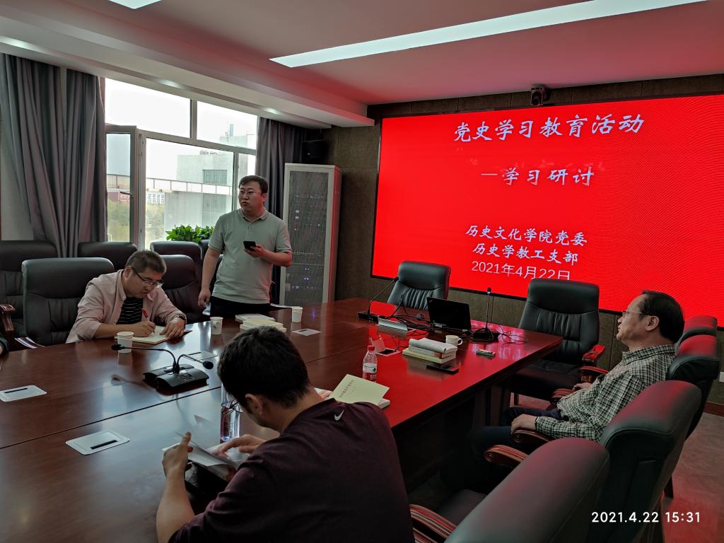 2021年4月22日下午,太阳成tyc7111cc历史学教工党支部开展党史学习教育集中研讨活动,支部教工党员就学习党史讲了自己的心得体会,并开展认真的讨论。