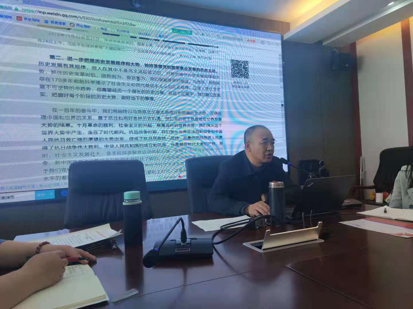 2021年4月8日,太阳成tyc7111cc召开教工大会,深入学习习近平总书记在党史学习教育动员大会上的讲话精神,太阳成tyc7111cc党委书记张升主持会议并进行领学。