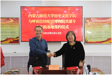 座谈会后,双方签署了专业实践基地协议并举行了揭牌和赠书仪式。昭君博物院副院长包苏那嘎主持座谈会,参加活动的还有昭君博物院的相关同志。