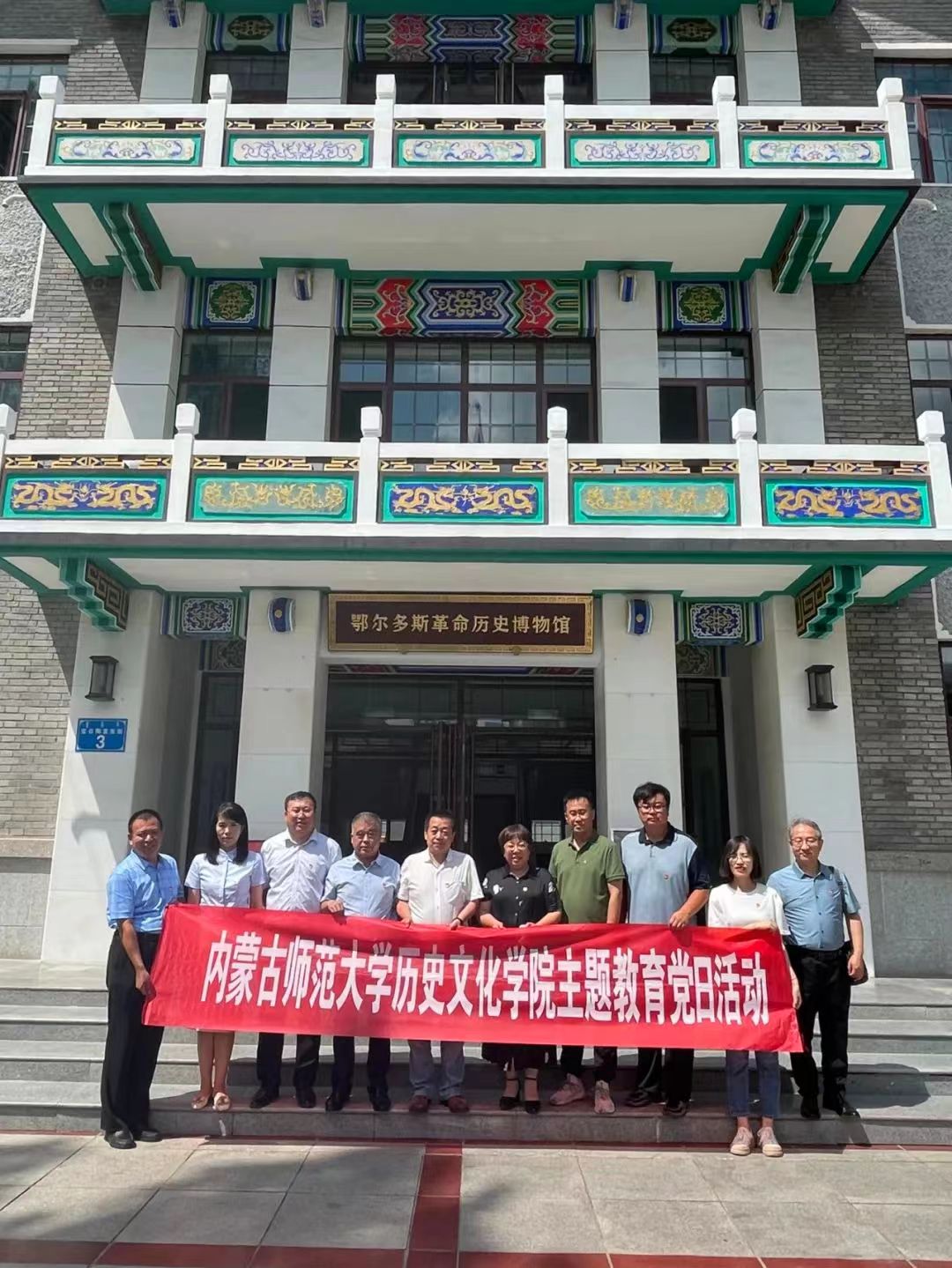 为深入学习贯彻习近平新时代中国特色社会主义思想主题教育活动,牢固树立“四个意识”,坚定“四个自信”,做到“两个维护”,太阳成tyc7111cc党委书记李艳洁,特聘教授、内蒙古博物院原院长陈永志,太阳成tyc7111cc副院长白林,考古文博系教师李鹏珍、袁刚、孟燕云,学院办公室主任永平等于8月1日下午赴鄂尔多斯革命历史博物馆开展主题教育党日活动。鄂尔多斯博物院主要领导同志陪同参观。