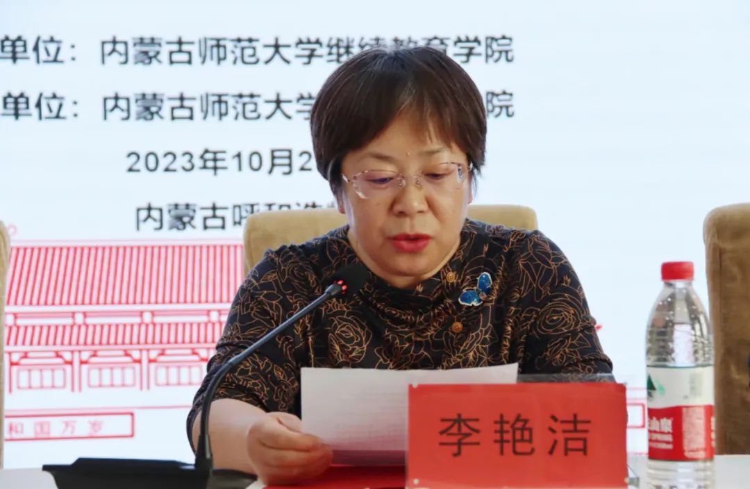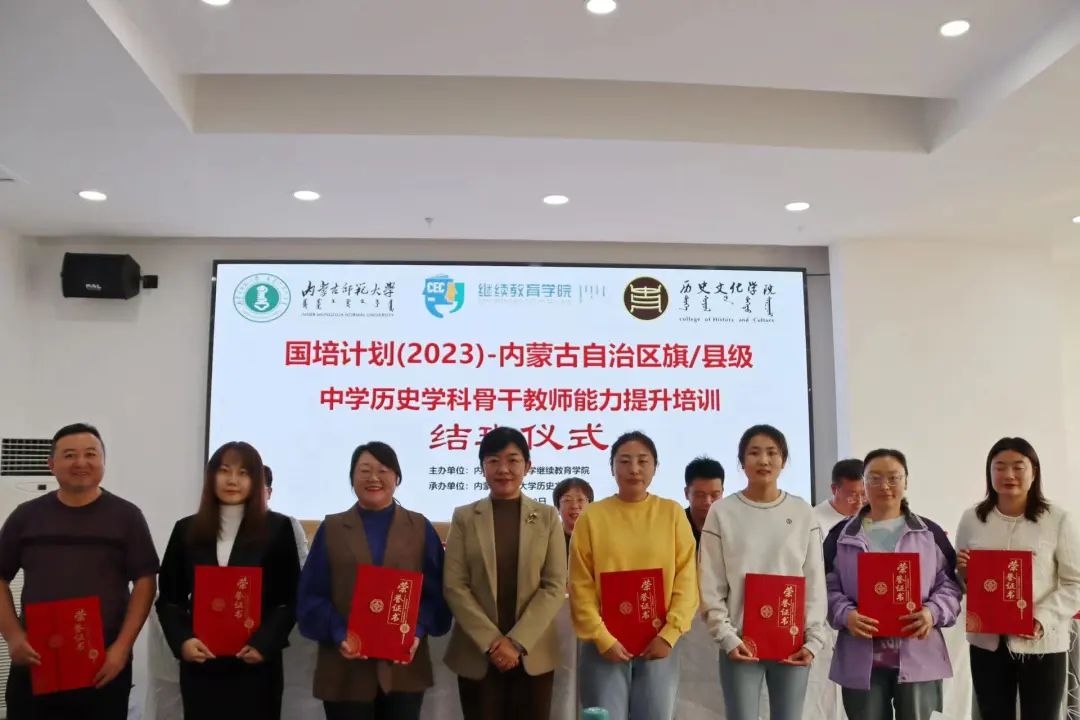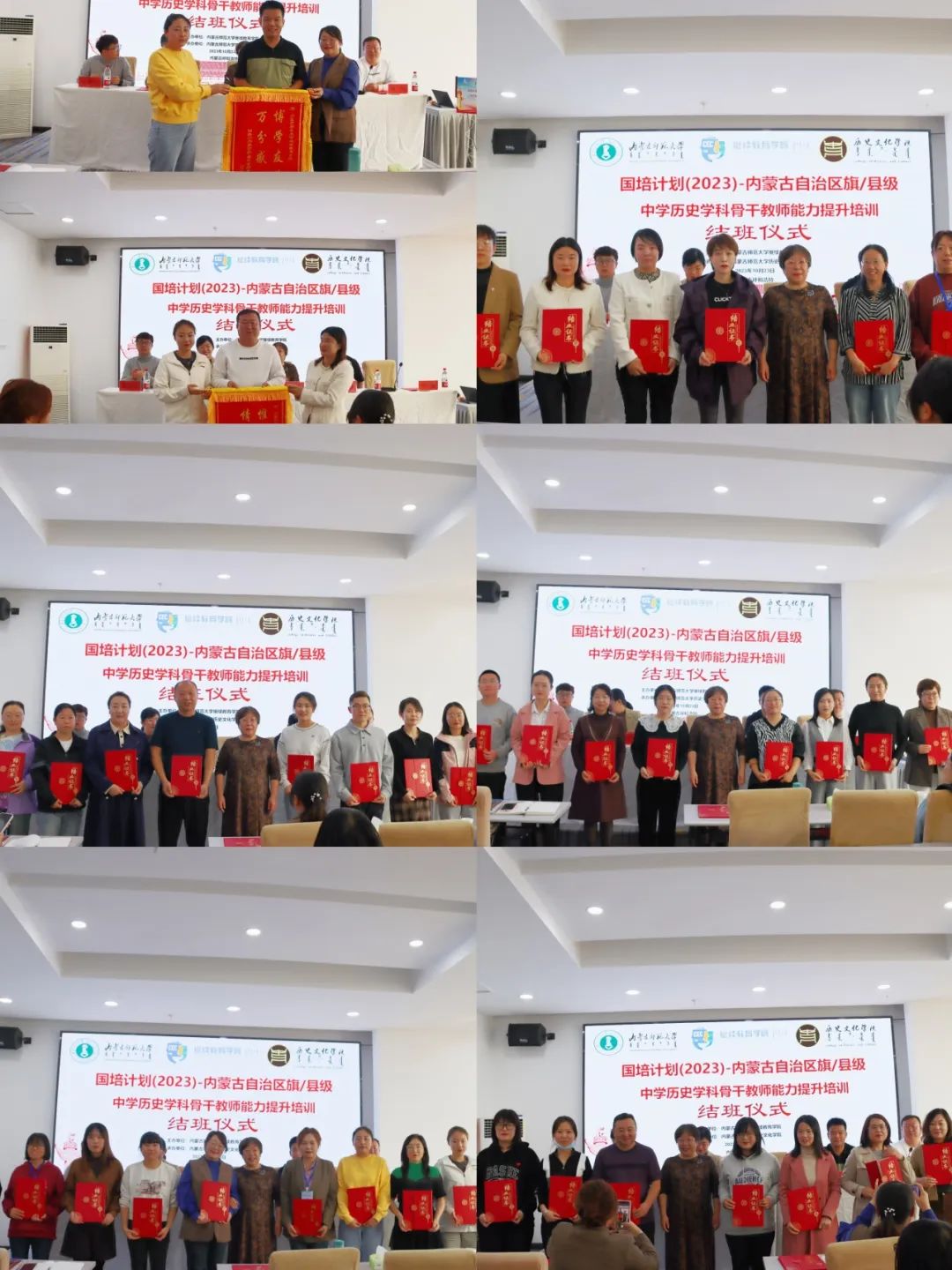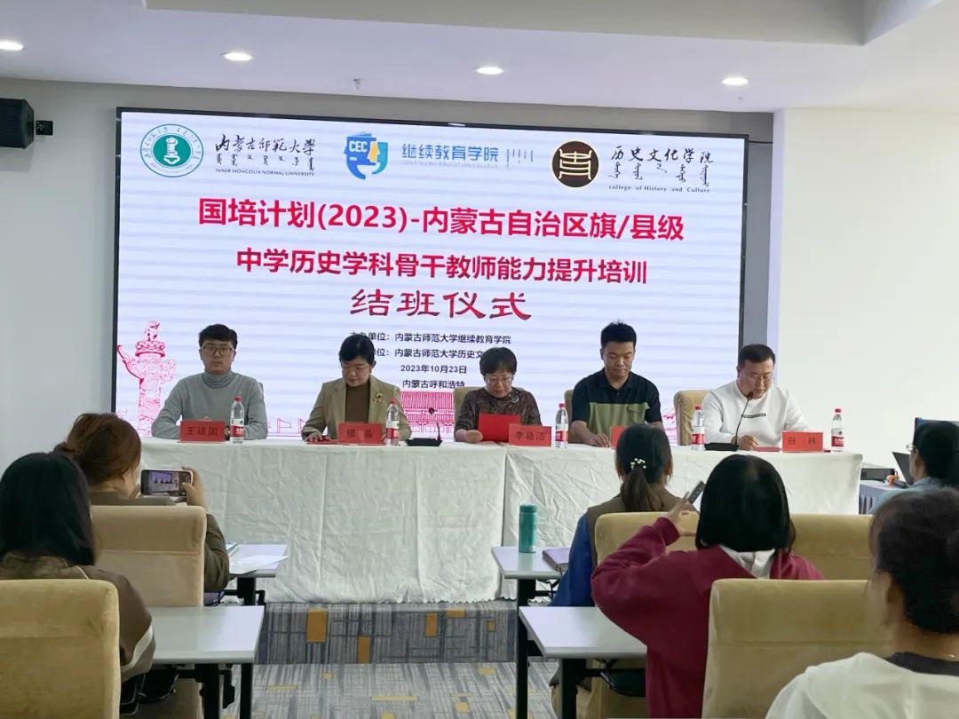 2023年10月23日下午,由太阳成tyc7111cc集团继续教育学院主办、太阳成tyc7111cc承办的“国培计划(2023)”——内蒙古自治区旗(县)级初中历史学科骨干教师培训班结班仪式在呼和浩特市赛罕区长安金座酒店四楼会议室举行。太阳成tyc7111cc集团继续教育学院培训部、自治区国培项目执行办公室王宣智老师,太阳成tyc7111cc党委书记李艳洁,党委副书记、副院长檀晶,副院长白林,培训班班主任王建国及50名参训学员参加仪式,结班仪式由太阳成tyc7111cc副院长白林主持。