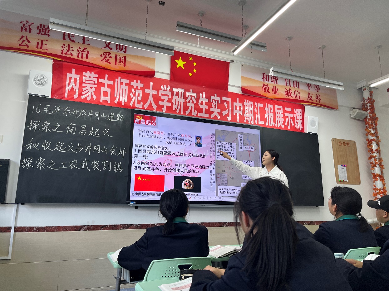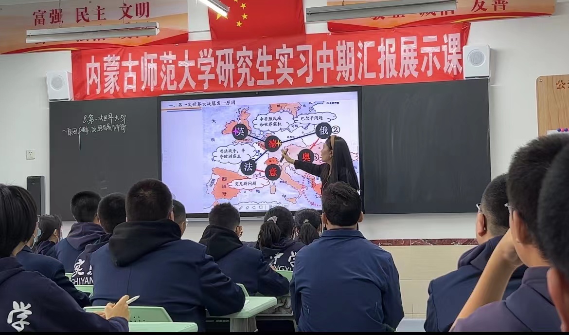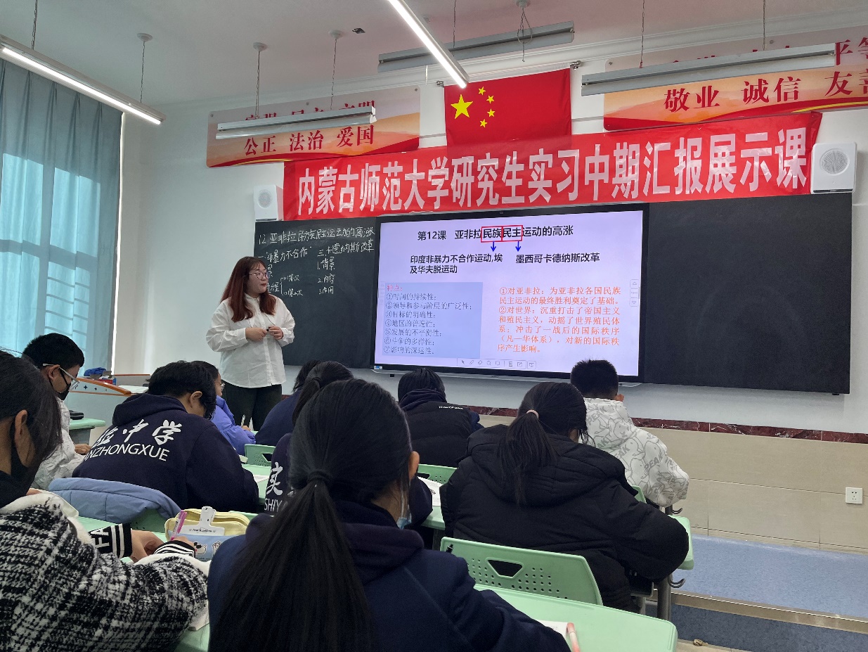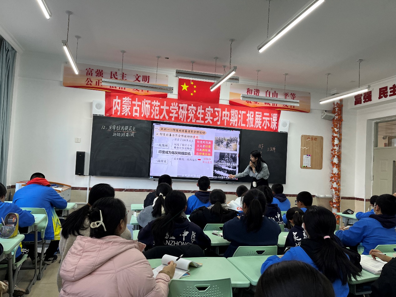 为了提高课堂教学的有效性,促推教师的专业成长,达到“以教促研,以研促教,教研相长”的目的。2023年11月15—16日,太阳成tyc7111cc联合呼和浩特市实验中学(鼓楼校区)历史组开展了研究生中期汇报展示课活动。太阳成tyc7111cc党委书记李艳洁、副书记檀晶、郭永胜教授、王洁、苏日古嘎、袁丽丽、于志勇,实验中学校长黄咏梅、副校长苗琪俊及副校长齐涛等老师出席了本次活动。