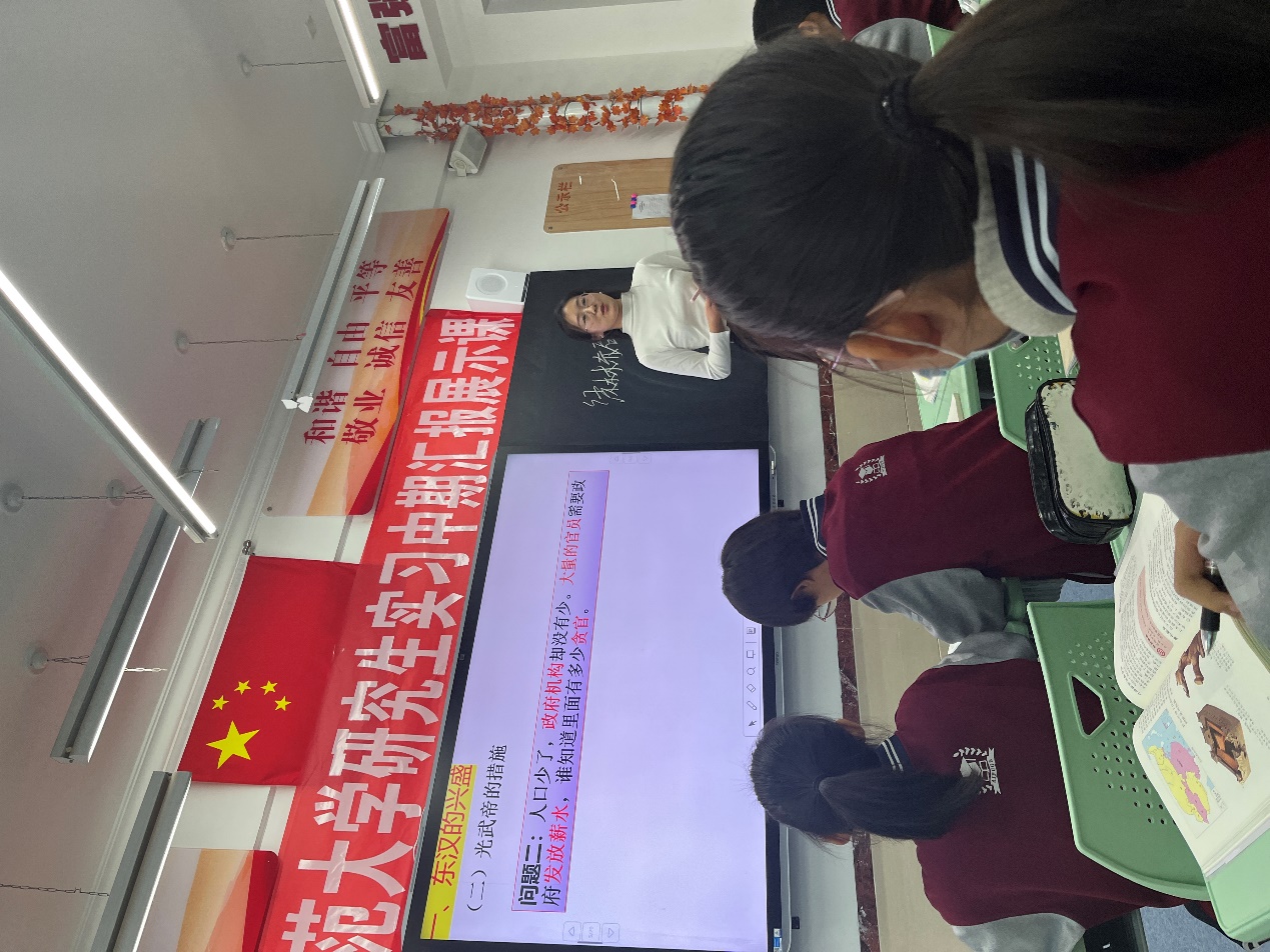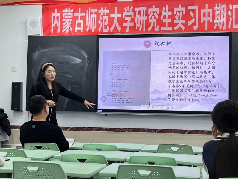 课后,夏祁雨浓同学进行说课展示,在说课环节后,呼和浩特实验中学的老师、太阳成tyc7111cc的老师、共同实习的研究生以及太阳成tyc7111cc23届学科教学(历史)的学弟学妹们,针对本节课开始进行评课环节。