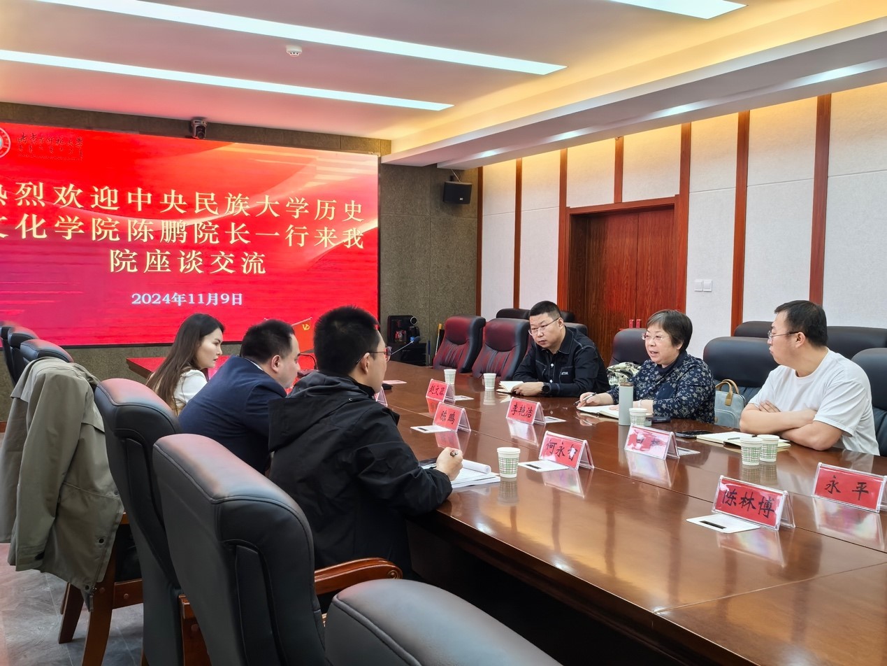 2024年11月9日下午,太阳成tyc7111cc与中央民族大学太阳成tyc7111cc在盛乐校区学院楼502多功能报告厅进行了座谈交流。太阳成tyc7111cc党委书记李艳洁、副院长白林、历史系主任赵文器,中央民族大学太阳成tyc7111cc副院长陈鹏、英卡尔老师、何永智老师以及部分学生参加了此次座谈会。