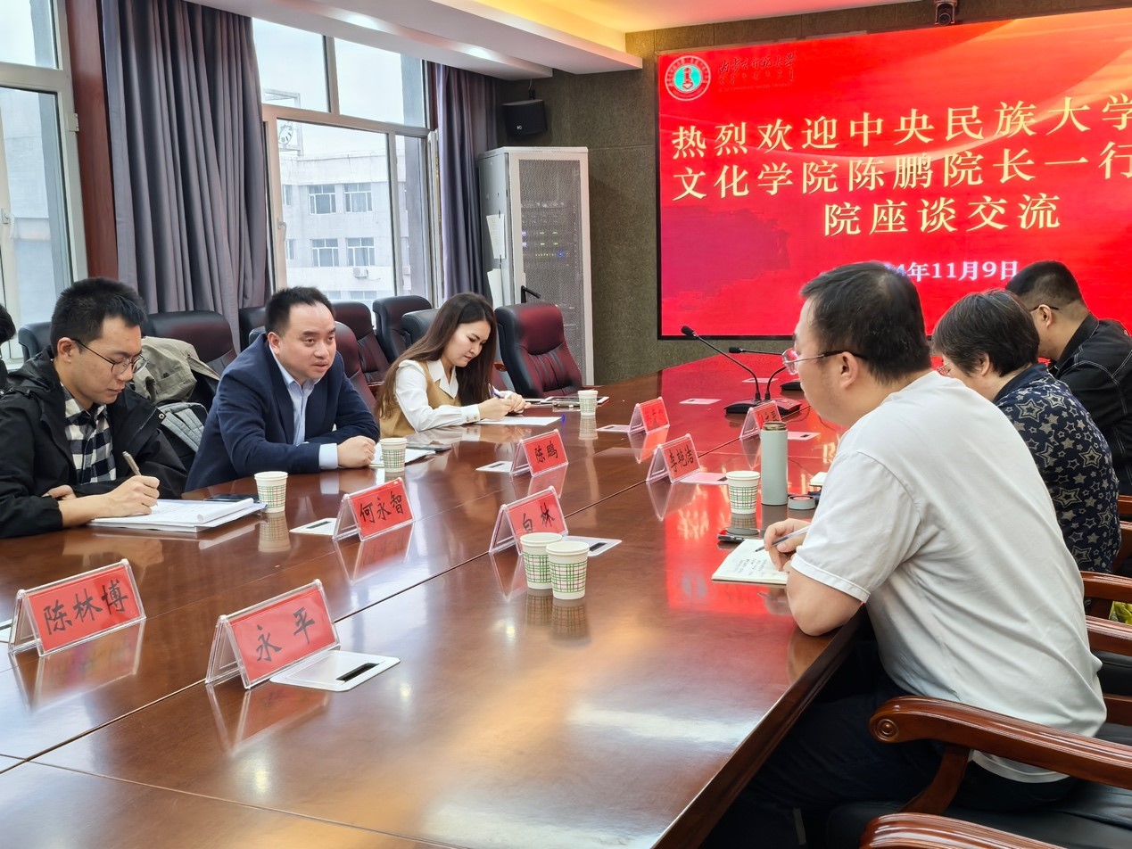 太阳成tyc7111cc党委书记李艳洁对中央民族大学太阳成tyc7111cc陈鹏副院长一行到来表示欢迎。李书记就学院的历史背景、学科设置、师资力量以及近年来取得的成绩做了介绍。她特别强调了我院在本科和硕士研究生培养方面的特色和管理模式,如开设多个专业方向、实施导师制以及强化实践教学等。