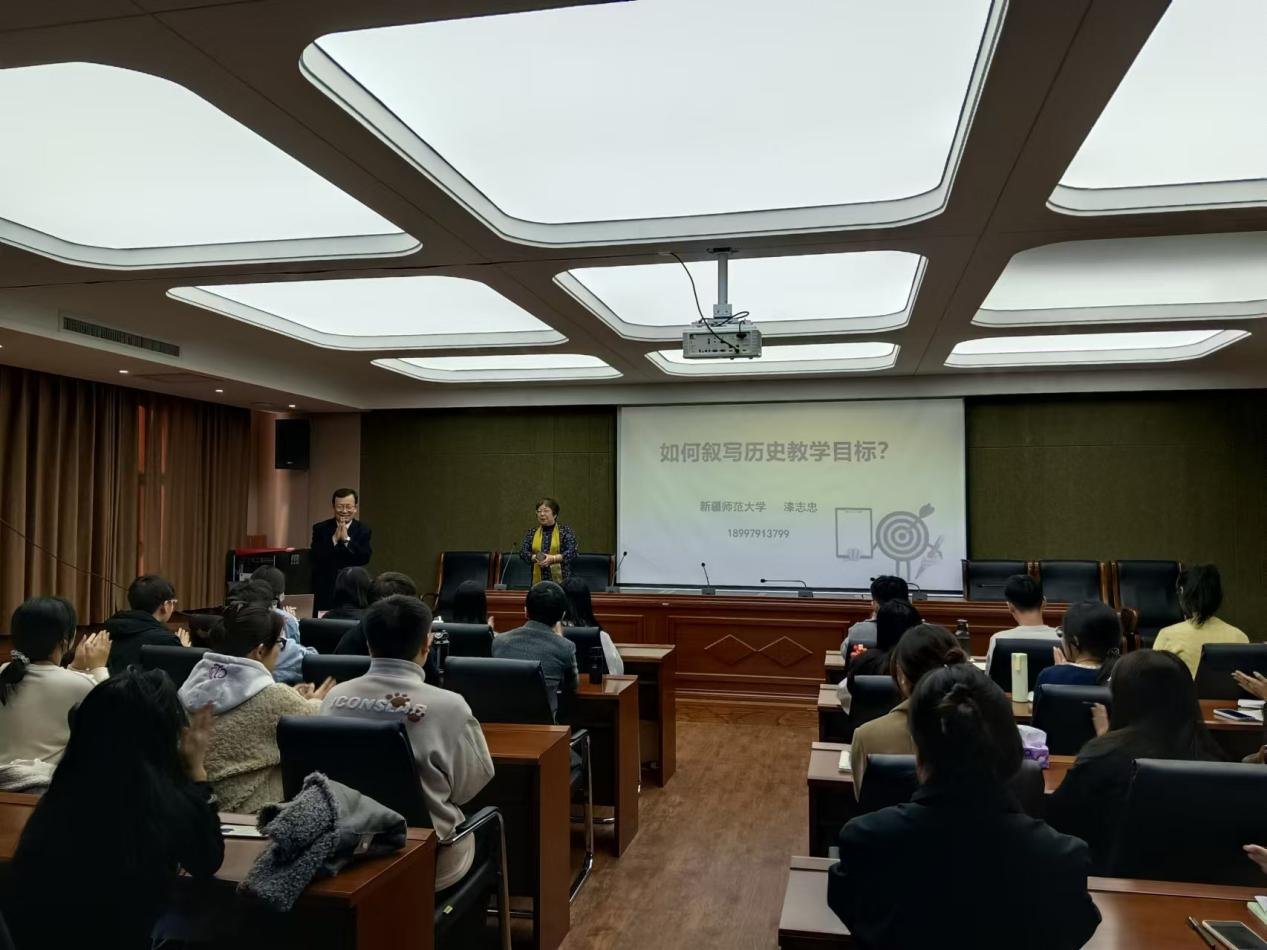 为进一步提高我院研究生对历史课程的全面认识,加强学生对历史学科核心素养的学习,2024年11月10日上午,我院邀请了新疆师范大学历史与社会学院漆志忠教授,聚焦“核心素养下的历史教学设计”进行讲座。我院党委书记李艳洁主持讲座,学科教学历史专业全体学生现场聆听讲座。