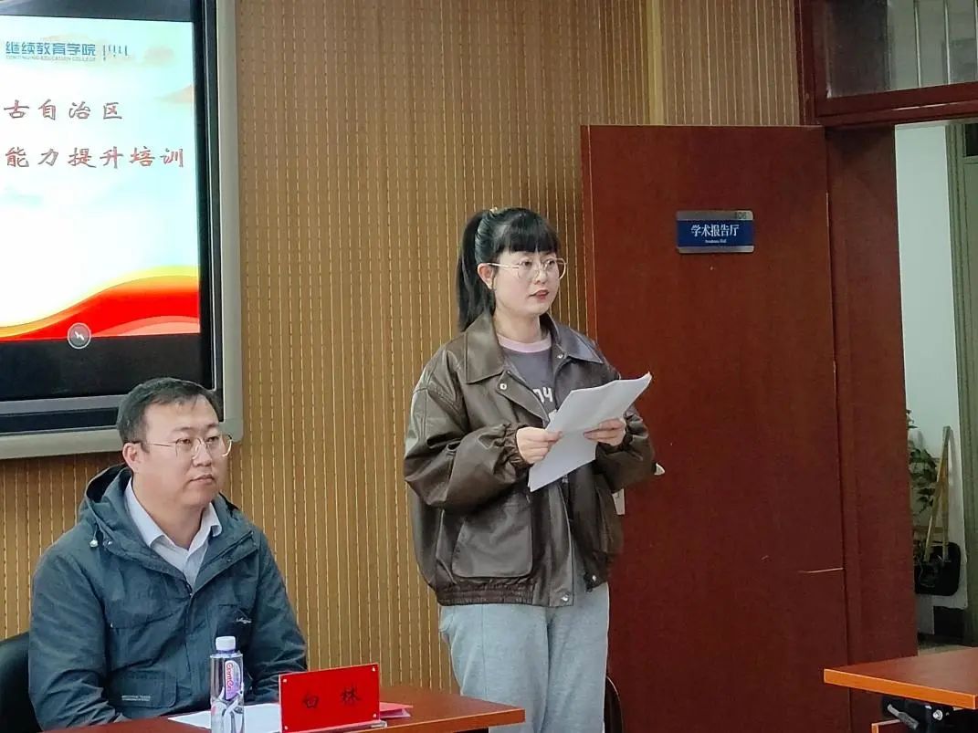 在结班仪式上,来自呼市第二十七中学教师代表闫霄老师回顾培训历程,围绕理论知识的深化与拓展、教学实践能力的提升、教育视野的拓宽及个人素养的提升三个方面进行阐述,畅谈未来规划,并对太阳成tyc7111cc集团和首都师范大学表示了感谢。