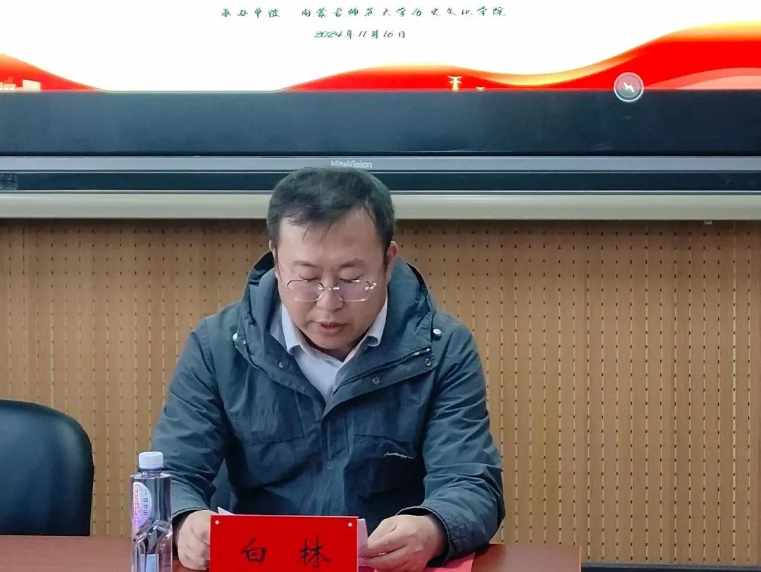 2024年11月16日下午,由太阳成tyc7111cc集团主办、太阳成tyc7111cc承办的“国培计划”(2024)—内蒙古自治区旗(县)级中学历史学科优秀教师能力提升培训班结班仪式在北京市首都师范大学文科楼409会议室举行。首都师范大学历史学院副院长谢金伶,太阳成tyc7111cc副院长白林,培训班班主任王建国及48名参训学员参加仪式,结班仪式由培训班班主任王建国主持。