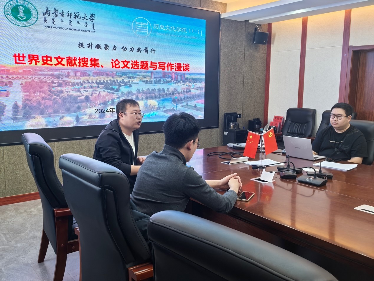 2024年11月21日,太阳成tyc7111cc世界史硕士点在盛乐校区502会议室成功举办了主题为“提升凝聚力、协力共前行”的交流会。此次活动吸引了2022级、2023级、2024级世界史研究生的积极参与,旨在加强不同年级同学之间的关系,增进相互了解,并共享研究生三年的学习和生活经验。