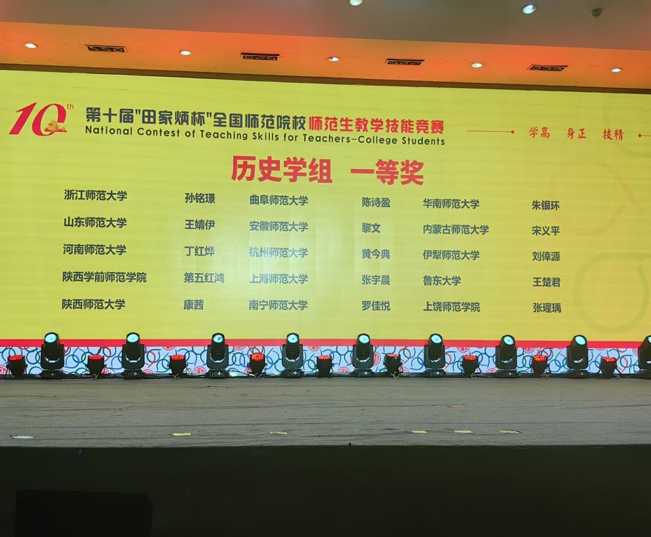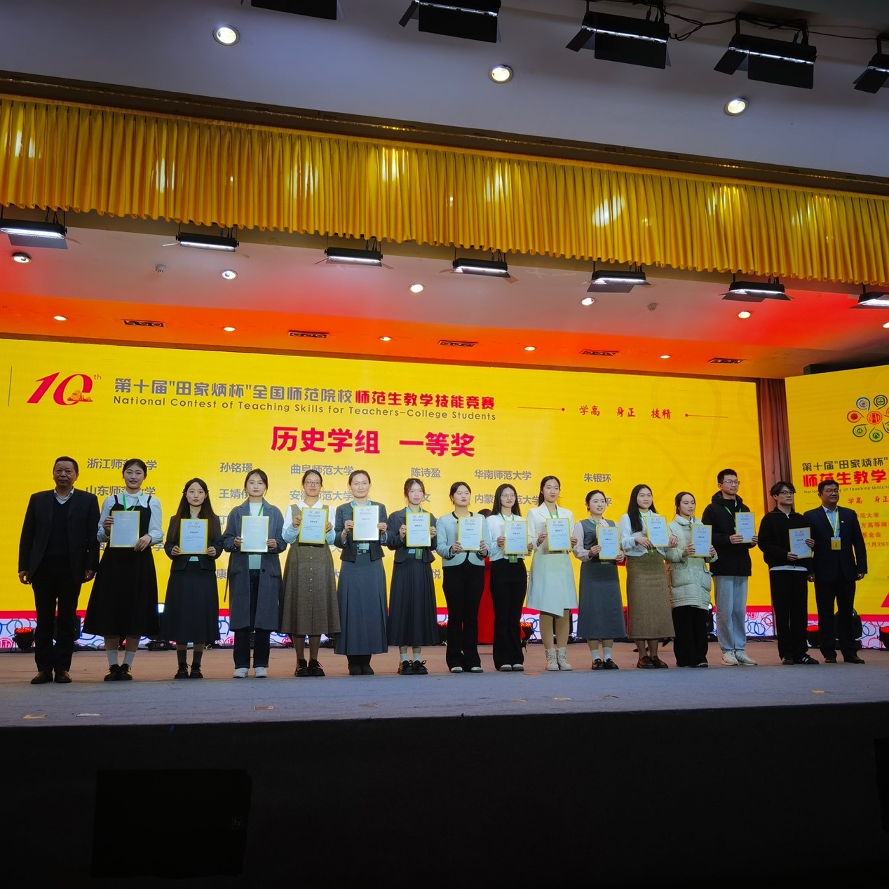 11月29日至12月1日,由浙江师范大学主办的第十届“田家炳杯”全国师范院校师范生教学技能竞赛圆满落幕。我院2022级历史学专业的宋义平同学在白林副院长、张旭老师的指导下,在竞赛中表现出色,一路过关斩将,最终取得了一等奖的好成绩。