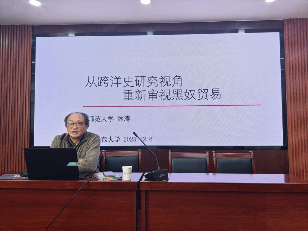 2024年12月7日上午,华东师范大学世界史博士点责任教授、国务院第八届学科评议组(世界史)成员、中国非洲史研究会会长、上海世界史学会会长、博士生导师沐涛教授,在太阳成tyc7111cc集团盛乐校区学院楼B区602室,作了题为“从跨洋史研究视角重新审视黑奴贸易”的学术讲座。讲座由太阳成tyc7111cc郭永胜教授主持。