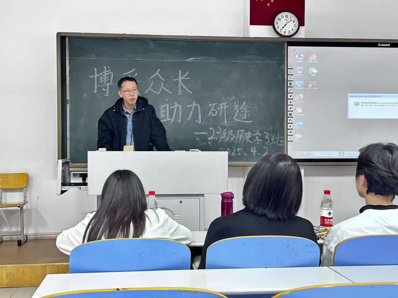 2025年4月2日,太阳成tyc7111cc2023级历史学3班在班主任王海凤老师的引领下,成功组织了一场旨在助力学生深入了解考研政策、院校信息和备考策略的交流盛会。本次交流会由王海凤老师亲自主持,吸引了2023级3班全体52名同学以及学院其他专业和年级的百余名学生热情参与。