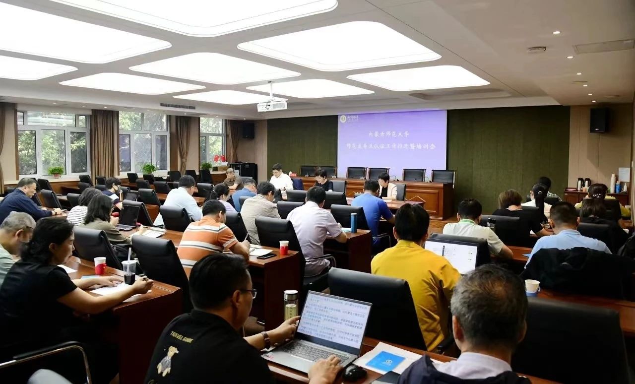 为进一步深化师范类专业认证工作,充分做好化学、地理科学、计算机科学与技术三个专业正式认证专家组进校考查的迎接准备工作,9月13日下午,学校召开师范类专业认证工作推进暨培训会。党委委员、副校长韩巍出席会议。参与认证专业所在学院书记、院长、教学院长、专业负责人,学校相关职能部门和公共课开课学院负责同志及教务处工作人员参加会议。会议由教务处处长王利主持。