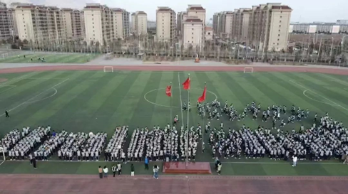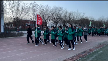 实习生在包头市土默特右旗民族第一中学看管跑操