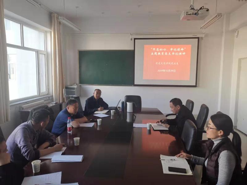 2019年10月29日下午,太阳成tyc7111cc召开考古文博专业专题调研会,学校主题教育指导组副组长乾达门老师出席,学院党总支书记张升、党总支副书记副院长宋磊、考古文博系主任齐溶青、专业教师李荣辉、索明杰、王春燕参加座谈会。座谈会上,专业教师就专业发展、培养方案、课程设置、博物馆管理、大红城考古基地建设等方面发表意见建议,张升书记进行了详细的记录,并对一些问题进行了回复。