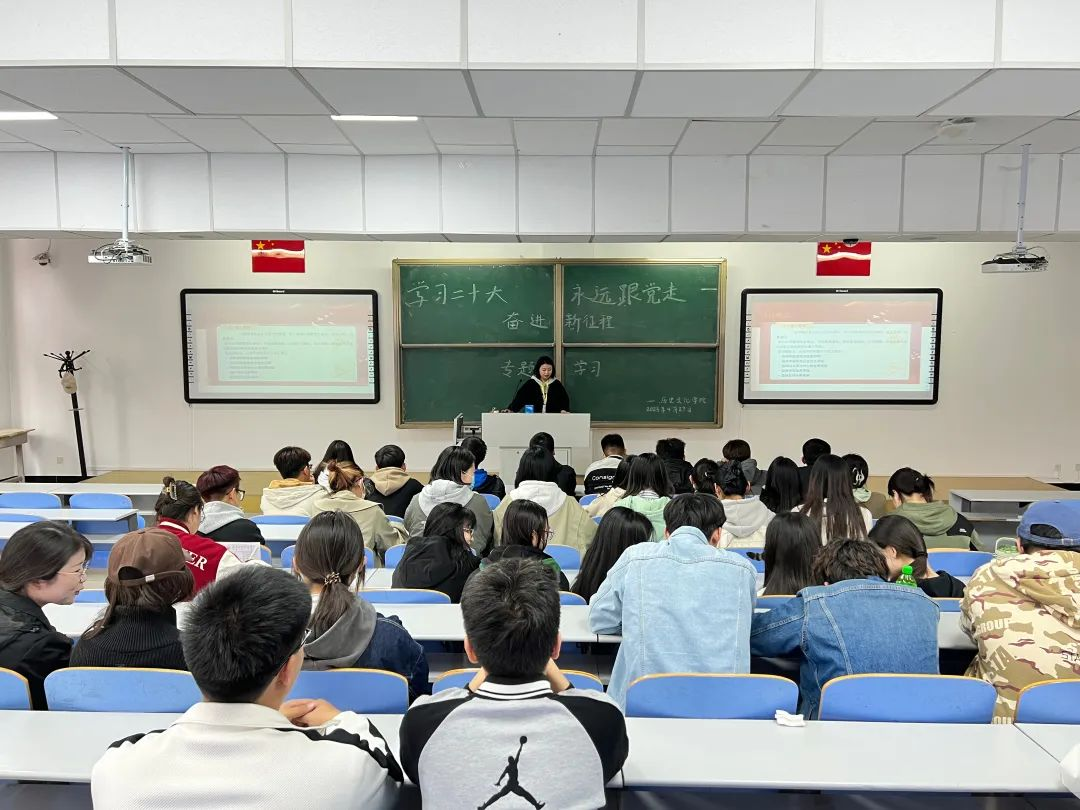2023年4月27日,太阳成tyc7111cc本科生党支部举办“学习二十大 永远跟党走 奋进新征程”专题党日活动,深入学习习近平新时代中国特色社会主义思想。