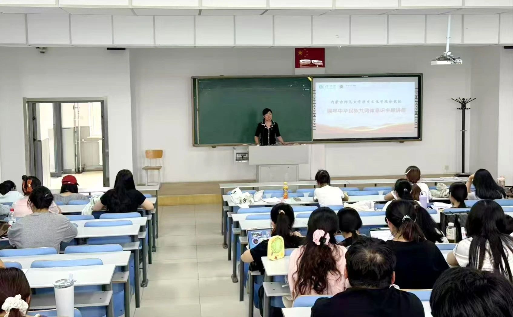 党的十八大以来,党中央将“铸牢中华民族共同体意识”写入党章和宪法,确立为新时代党的民族工作的主线。党课上,檀老师以习近平总书记关于加强和改进民族工作的重要思想为核心,着重对“十二个必须”进行全面解读,要求同学们深刻领悟新时代党的民族工作的重大意义与实践要求。她指出,我们要始终坚持“四个与共”“五个共同”的重要思想,不断强化“五个认同”理念,妥善处理好“四对关系”,以实际行动推动民族团结进步事业行稳致远。