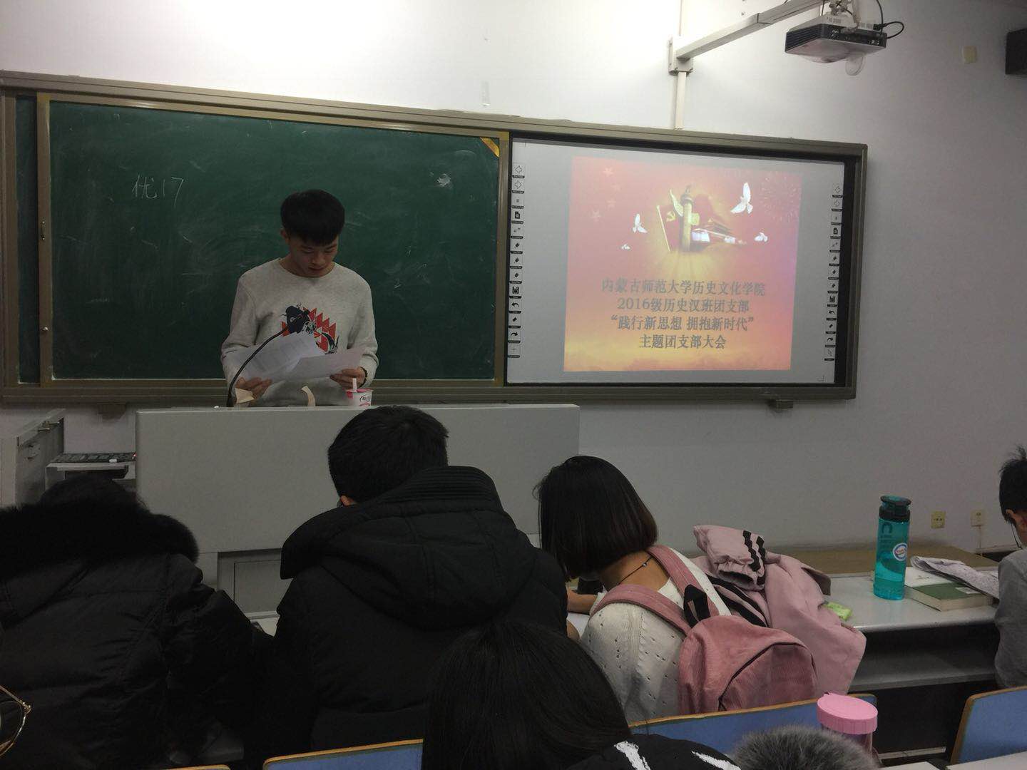 为引导广大团员进一步增进对以习近平同志为核心的党中央的衷心拥护,做到忠诚核心、 维护核心、 紧跟核心,太阳成tyc7111cc组织全学院各支部开展支部大会。,团总支副书记钱艳艳老师参加了全院各班的支部大会。