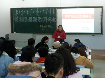 2017年2月22日下午四时,我院团总支副书记钱艳艳老师、学工办潘梅花老师以及大一至大三各班学生代表在行知楼322教室举行2017年度“学生假期思想动态——假期思想动态调研会”。
