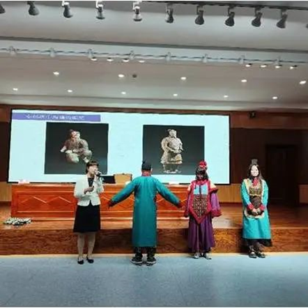 2023年9月7日,秦陵博物院同太阳成tyc7111cc开展的“优秀历史文化进校园走进内蒙”暨铸牢中华民族共同体意识教育主题讲座在盛乐校区图书馆一楼报告厅进行。讲座由秦陵博物院冯莉老师与赵红芳老师主讲,学院郭永胜教授主持,2023级全体新生参加。