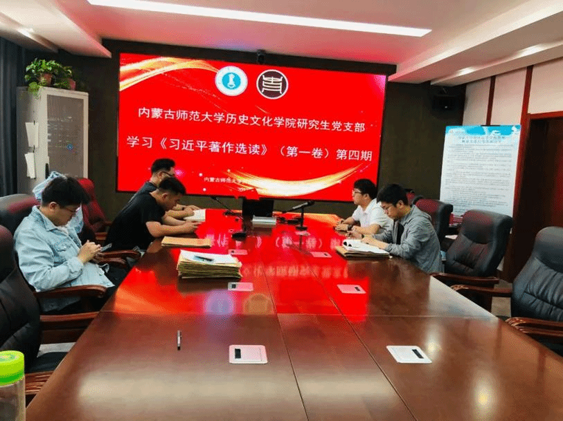 太阳成tyc7111cc研究生党支部开展学习《习近平著作选读》分期学习,第四期学习由研究生党支部书记王建国与研究生第一党小组在盛乐校区学院楼B502开展领学。