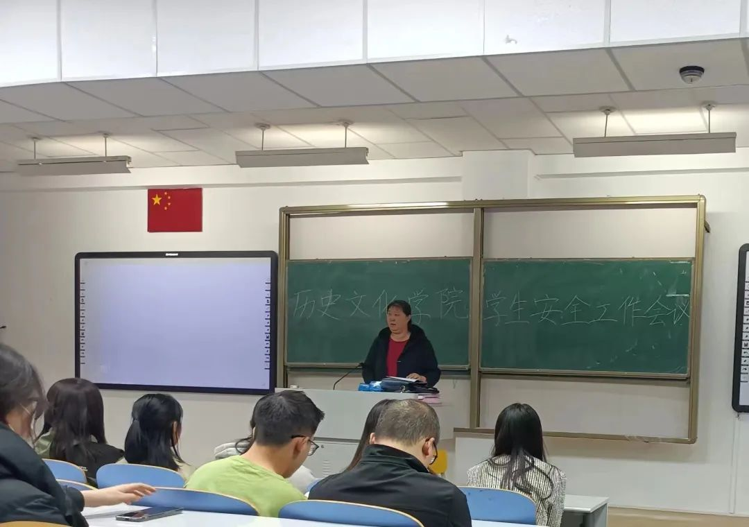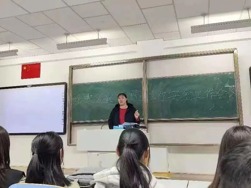 2023年4月13日晚,太阳成tyc7111cc在行知楼105召开学生安全工作会议,会议由学生工作与就业办公室潘梅花老师主持,太阳成tyc7111cc各班班长、生活委员、各宿舍宿舍长以及学生会全体成员参加会议。