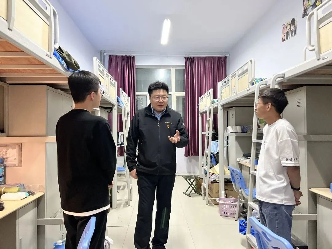 老师们在走访过程中嘱托同学们提高安全防范意识并遵守宿舍日常管理和纪律安全守则,共同维护宿舍安全。
