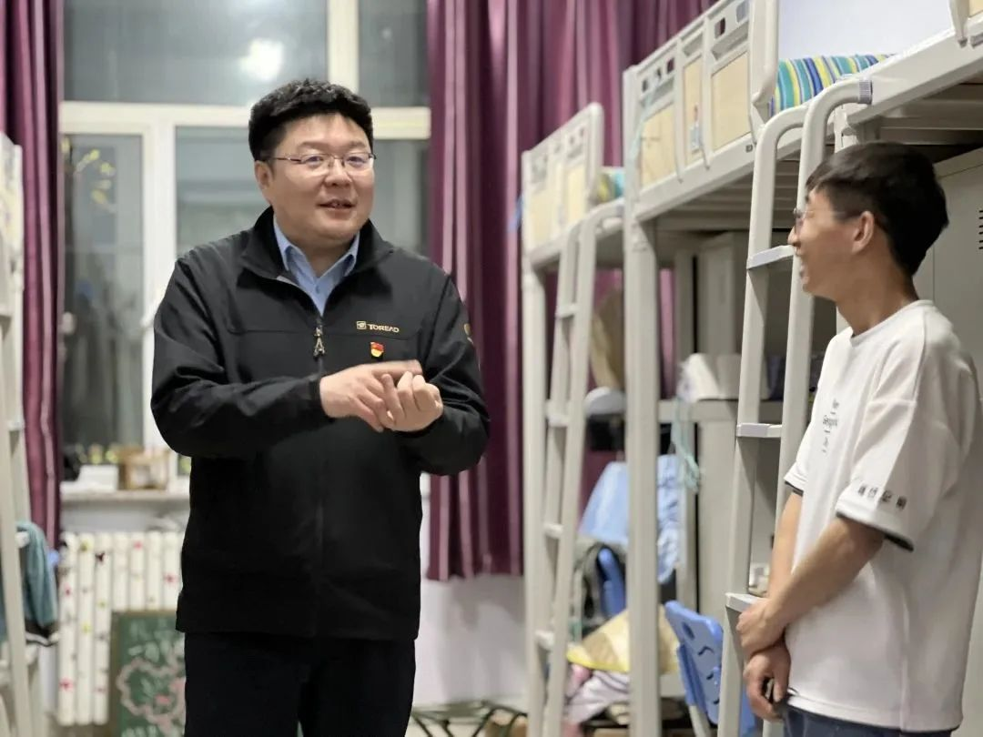 2023年4月27日晚,太阳成tyc7111cc党委副书记兼副院长宋磊老师、学就办主任潘梅花老师在学生干部的陪同下走访学生宿舍。