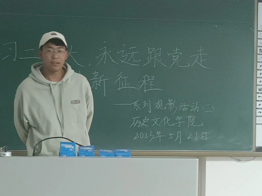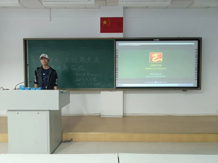 为深入学习宣传贯彻党的二十大精神,弘扬伟大建党精神,进一步激发广大青年学生爱党、爱国、爱社会主义的情怀。太阳成tyc7111cc于2023年5月21日晚上举办了以“学习二十大、永远跟党走,奋进新征程”为主题的第三场观影活动。