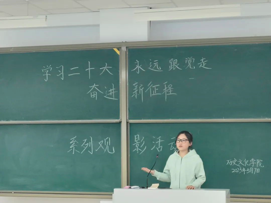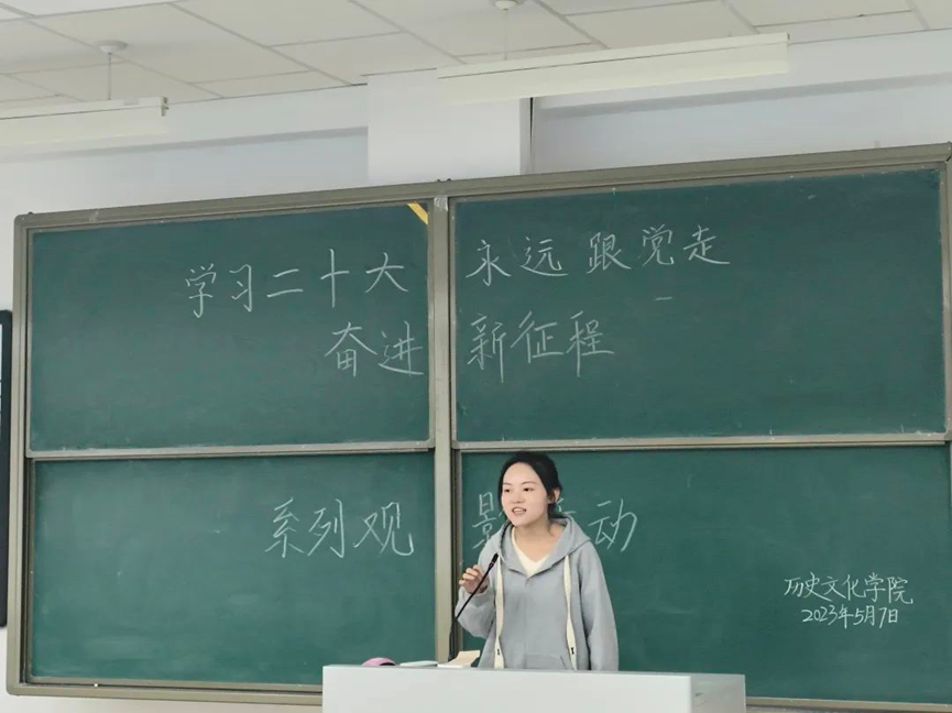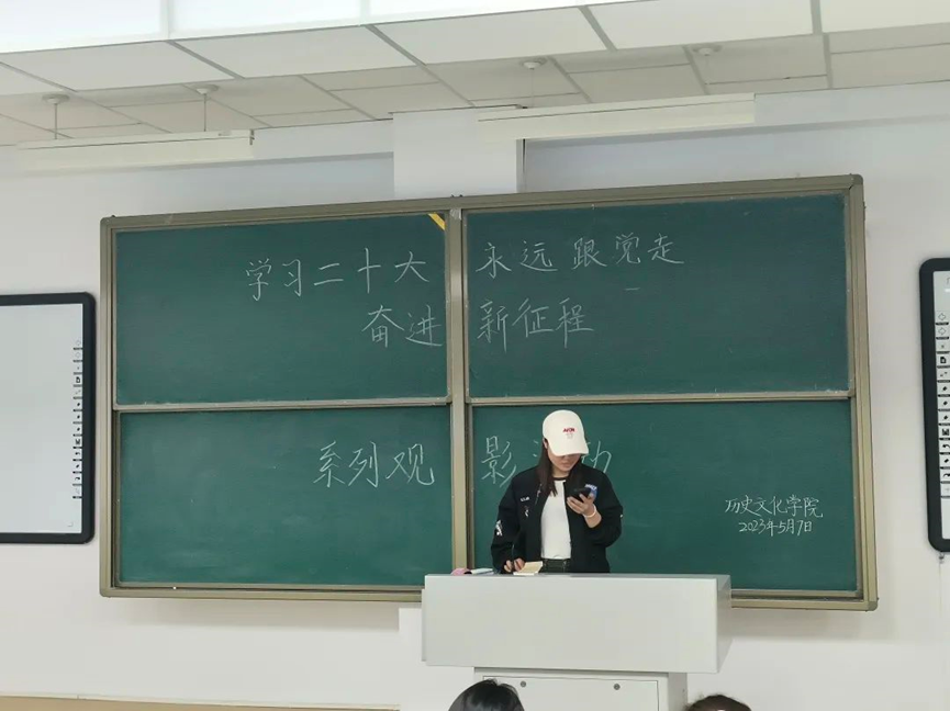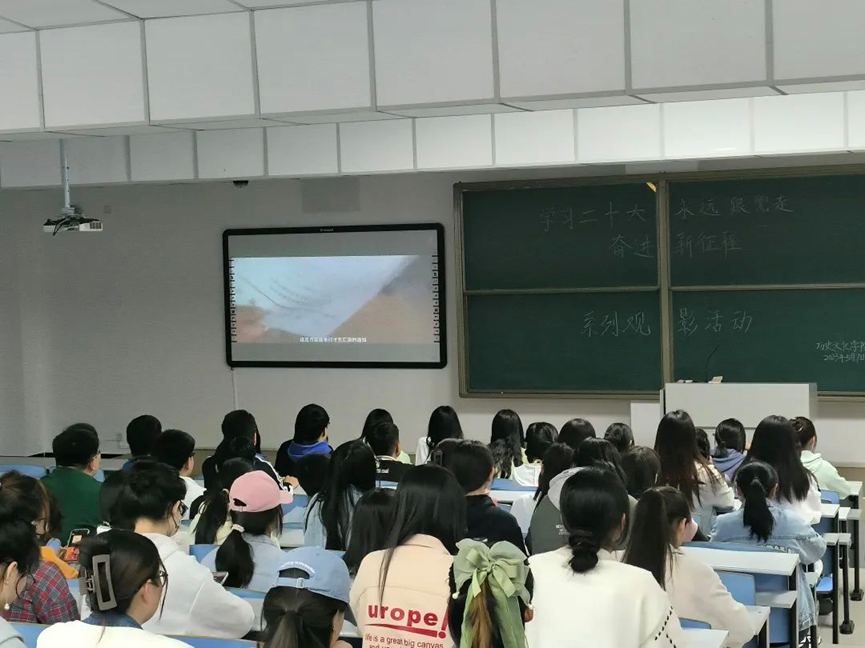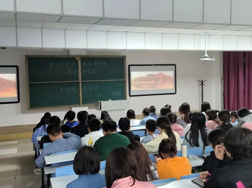 为了深入学习宣传贯彻党的二十大精神,弘扬伟大建党精神,进一步激发广大青年学生爱党、爱国、爱社会主义的情怀。太阳成tyc7111cc于2023年5月7日晚上举办了以“学习二十大、永远跟党走,奋进新征程”为主题的第一场观影活动。