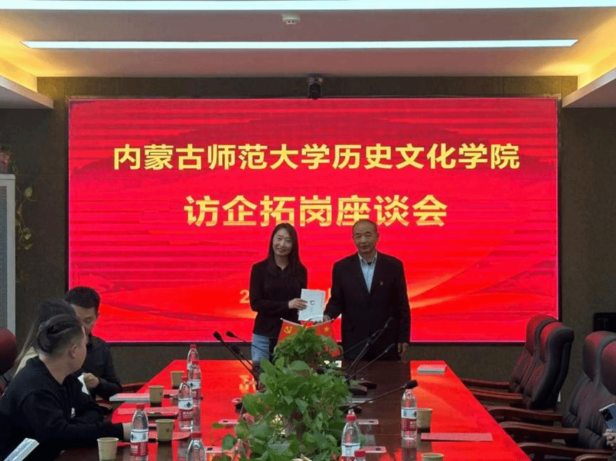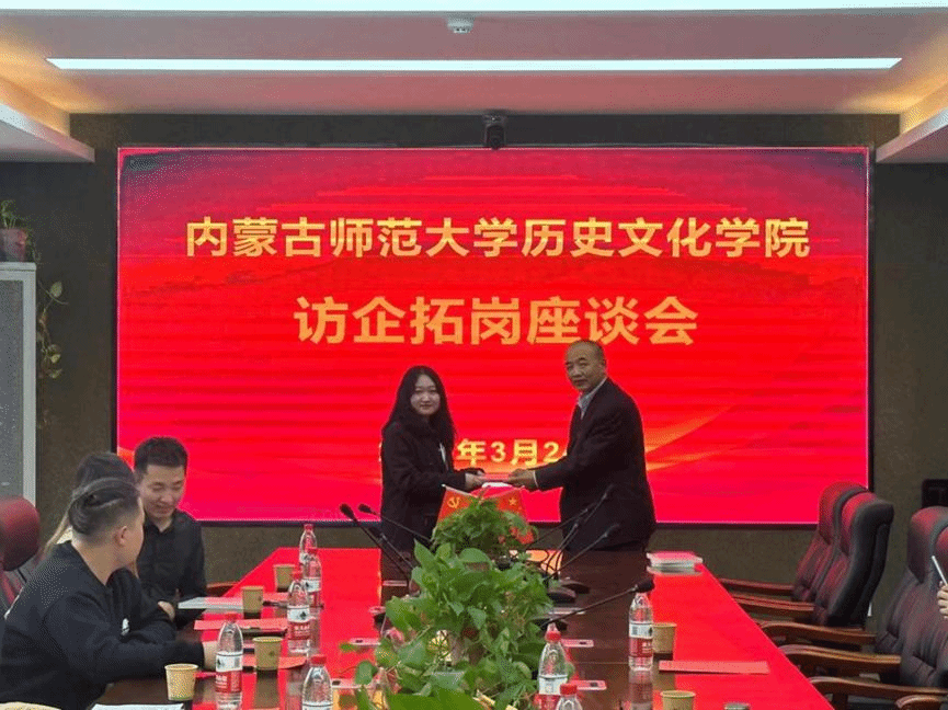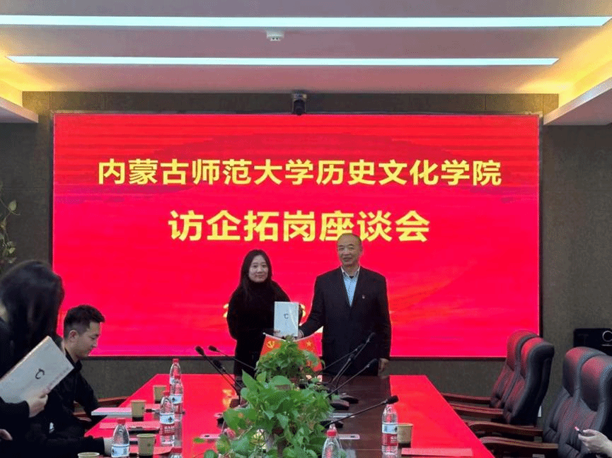 最后,学院党委书记张升代表学院向各位前来参会的企业代表赠送了《简明内蒙古地方史》书籍,并表示希望通过此次访企拓岗活动,一方面向优质企业推荐历史学专业毕业生,拓宽就业渠道,做好企业和人才的供需对接;另外一方面,可以深度了解用人单位对毕业生的知识、能力、素质要求,努力培养以出口为导向的高素质优秀人才。