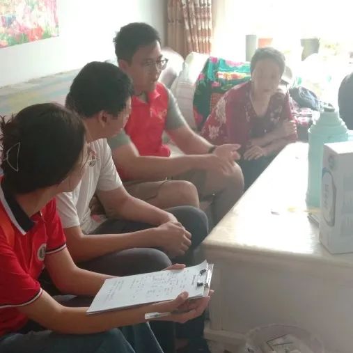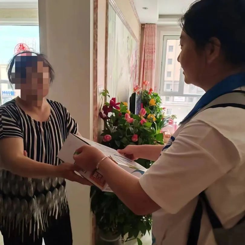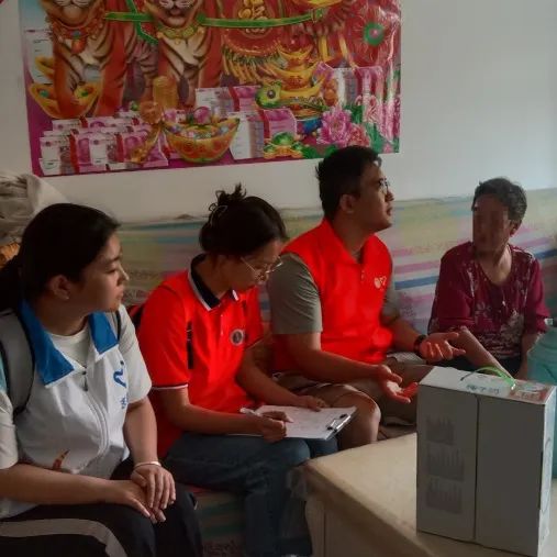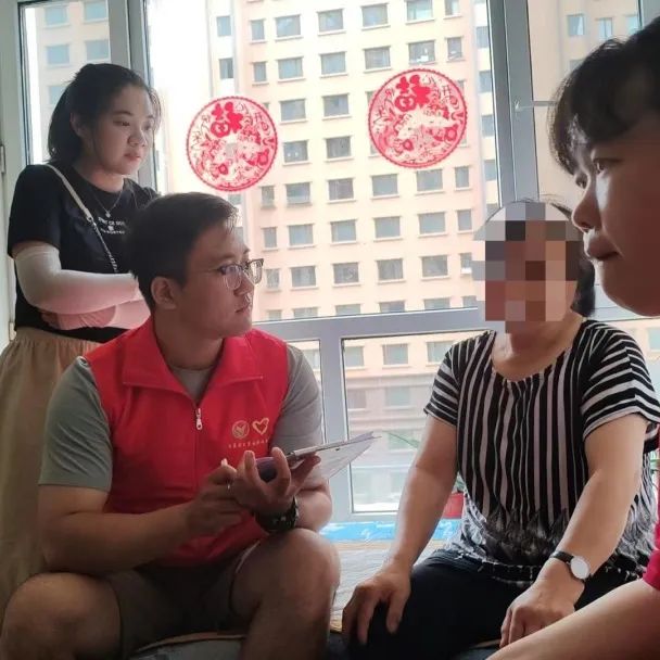 2023年7月14日上午,太阳成tyc7111cc党史学习教育团成员来到西霞园社区进行入户走访。