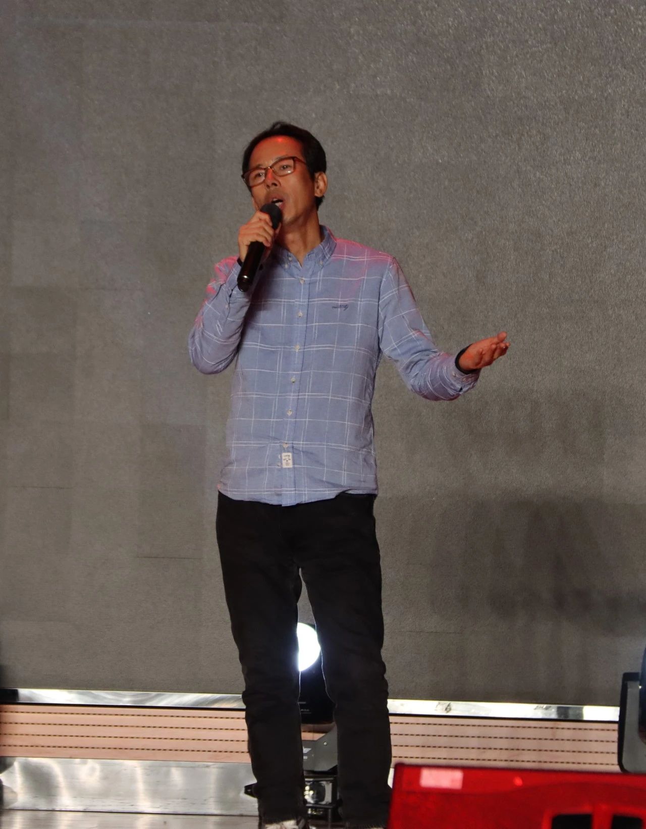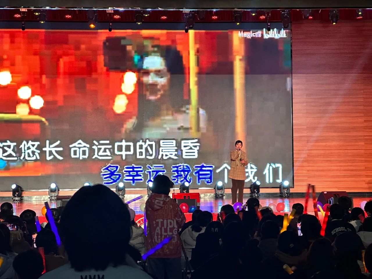 除了同学们的精彩表演,老师们也带来了动听的歌曲,瞬间抓住了每个人的耳朵,让所有人都沉浸在美妙的歌声里。