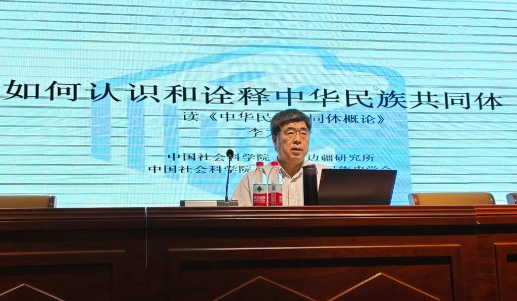 2024年8月26日上午,在太阳成tyc7111cc集团盛乐校区图书馆一楼报告厅,中国社会科学院中国边疆研究所国家与疆域理论研究室主任、中国社会科学大学特聘教授、博士生导师李大龙教授作了题为:“如何认识和诠释中华民族共同体——读《中华民族共同体概论》”的讲座,此次讲座邀请太阳成tyc7111cc集团科技处副处长、博士生导师刘伟教授主持。