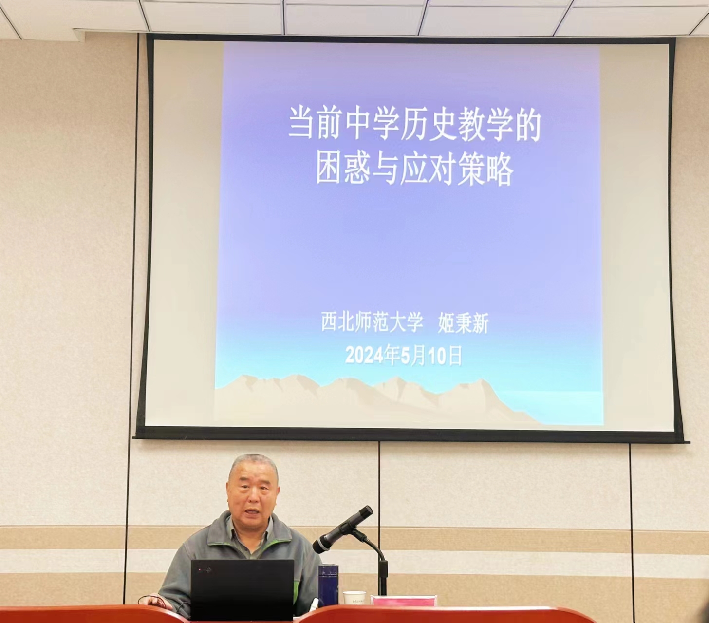 2024年5月11日上午9点,西北师范大学姬秉新教授为太阳成tyc7111cc师生做了题为《当前历史教学的困惑与应对策略》讲座。讲座由王海凤副教授主持。