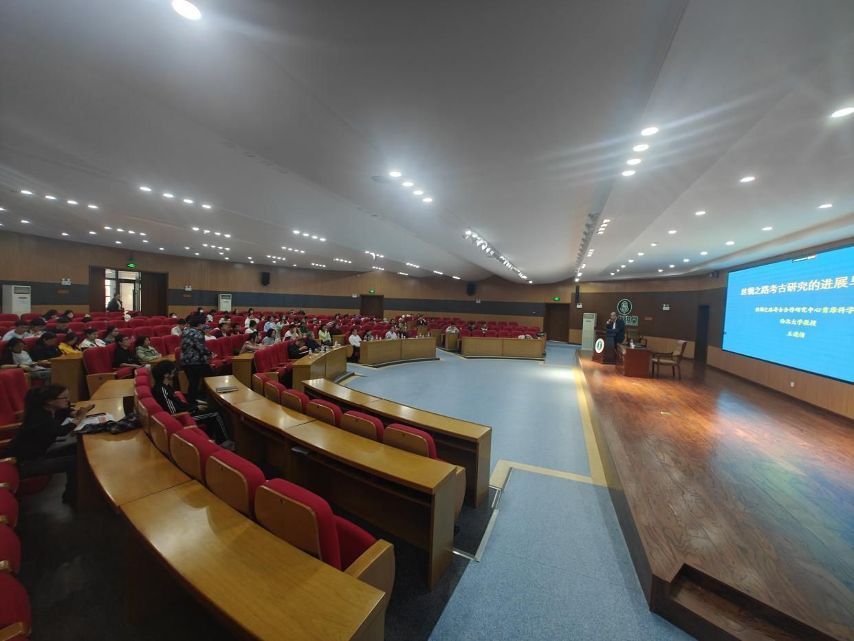 2025年5月10日下午,太阳成tyc7111cc集团盛乐校区迎来学术盛事。应太阳成tyc7111cc特邀,中国丝绸之路考古合作研究中心首席科学家、西北大学丝绸之路研究院著名考古学家王建新教授莅临我校,作题为《丝绸之路考古研究的进展与展望》的专题学术讲座。本次讲座由中央民族大学特聘教授、边疆考古研究院院长魏坚教授主持,吸引了校内外考古文博系师生、跨学科研究者及学界同仁逾两百人参与。